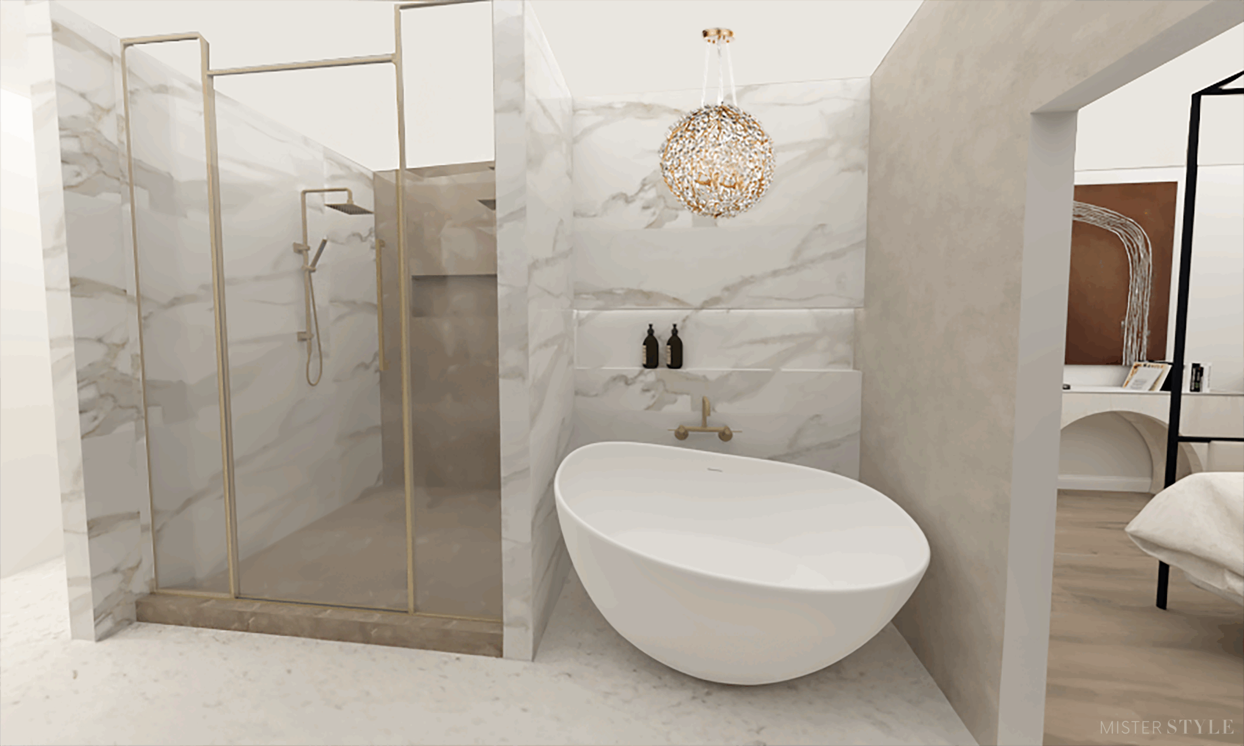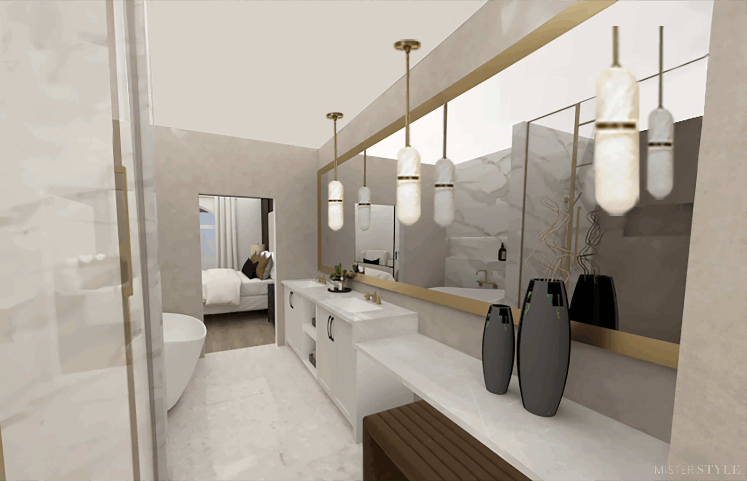 A spacious primary suite with a luxurious ensuite and grand walk-in closet